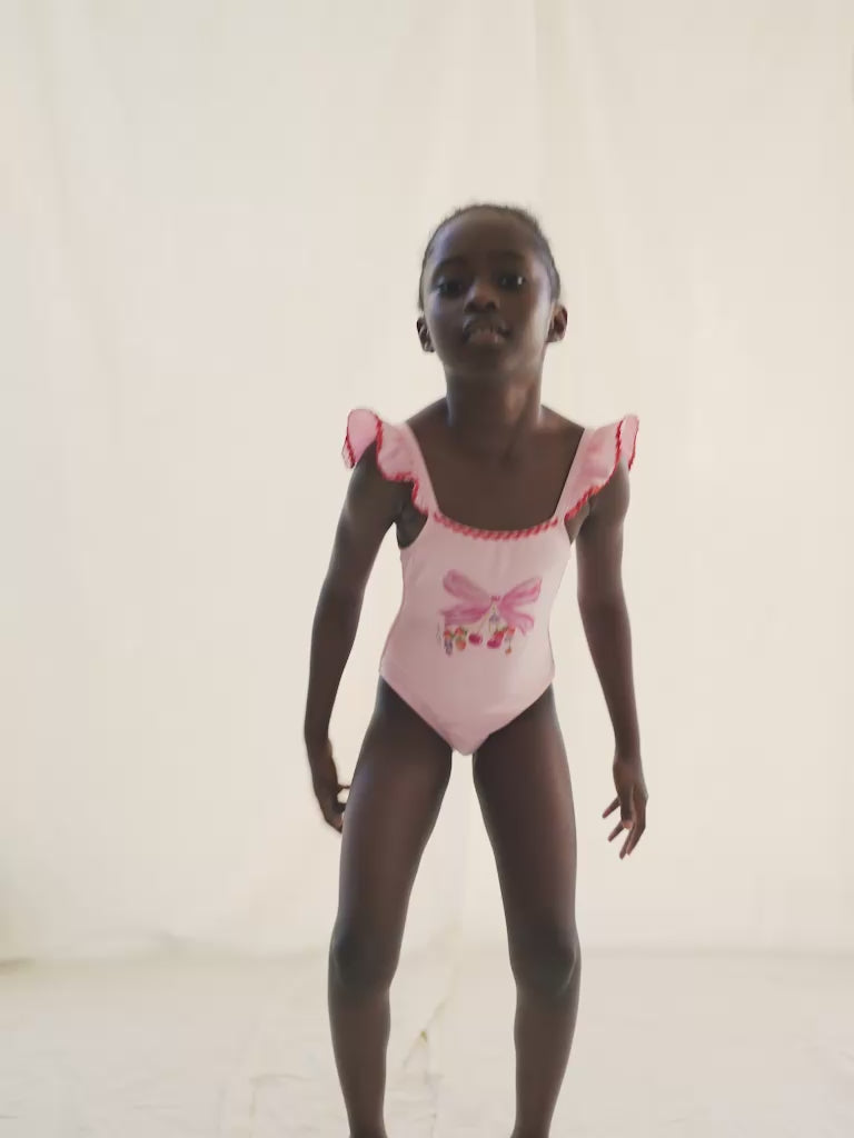 A dreamy floral one-piece designed for sun-filled days. The Juliet swimsuit features delicate butterfly accents at the straps, beautiful scalloped detailing on the neckline, and a comfortable, stretchy fit that’s perfect for all-day wear. Romantic pink fabric with watercolor bow print gives a perfect careless summer feeling.